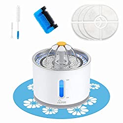 A cat water fountain will keep the water moving in your cat’s bowl, which may be the solution if they’re scratching the ground to try and find where the water starts. Here are a few options: